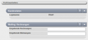 Hier Können Sie einstellen an welche Mailadresse bzw. Adressen ihre Rechnungen gesendet werden sollen. Haben Sie einmal eine Rechnung verloren oder versehentlich gelöscht können Sie jeder Zeit eine Rechnungskopie anfordern.