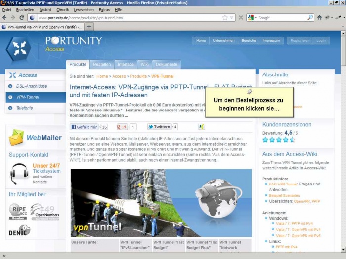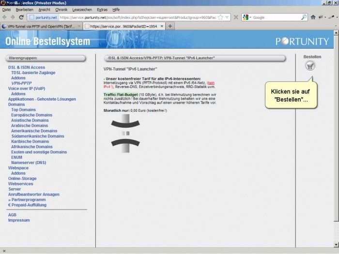 Diese Anleitung beschreibt wie Sie Kunde bei Portunity werden. Sie werden durch die Buchung ihres ersten Produkts begleitet. Dieses Produkt wir der kostenlose VPN-Tunnel "IPv6 Launcher" sein.