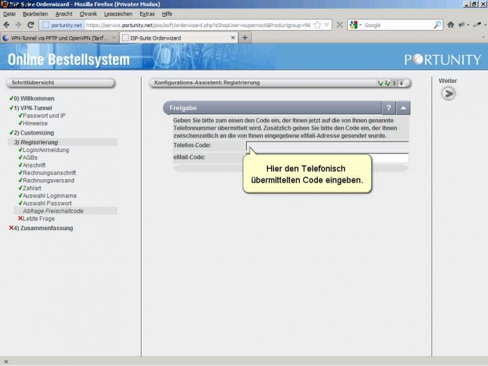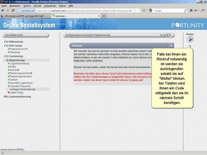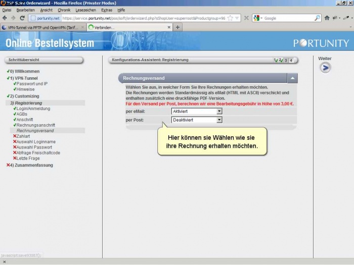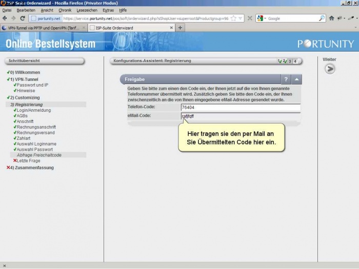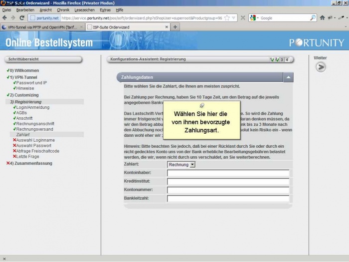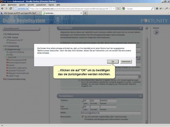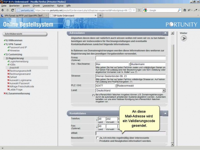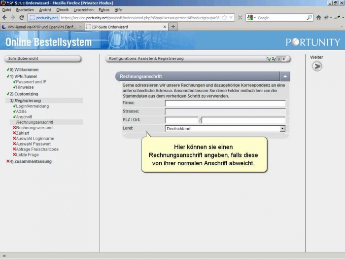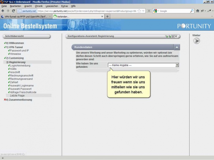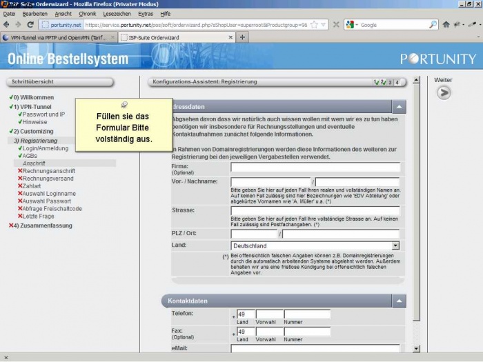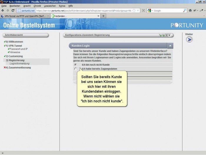 Als Neukunde müssen sie sich bei Portunity anmelden und ihre Kundendaten angeben.