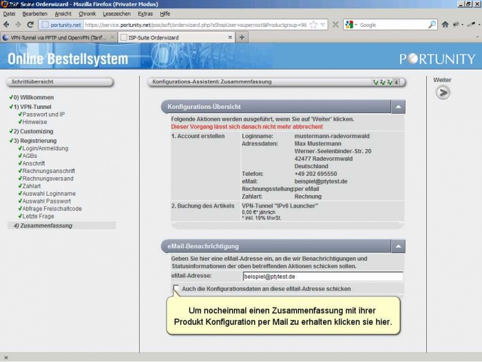 Im Nächsten schritt wird ihr Tarif verbindlich für sie eingerichtet.